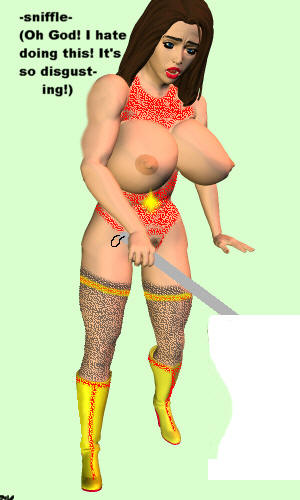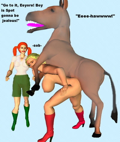 1st picture showed sow, naked accept for her boots as she scooped Eeyore's shit